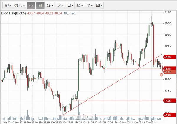 уже на текущих уровнях. Целью данного движения может стать уровень 47,05 долларов за баррель,