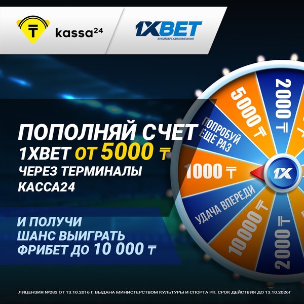 Пришло время испытать свою удачу! ⠀ Мы запускаем интереснейшую акцию совместно с 1Xbet – розыгрыш фрибетов* через терминалы Kassa24. ⠀ Условия для участия просты, а шансы – значительны. Итак, вам нужно сделать 3 простых шага: — Пополнить счет 1Xbet через терминалы Касса24, на сумму от 5000 тг и выше. — Заполнить поле, указав свой email (почту). — Запустить колесо Фортуны на терминалах Kassa24. ⠀ Готово! В случае выигрыша, ваш промокод будет отображен в чеке, а также — отправлен на указанную вами почту. ⠀ Важно Акция продлится до 31.08.2019 г. П… — Читать дальше
