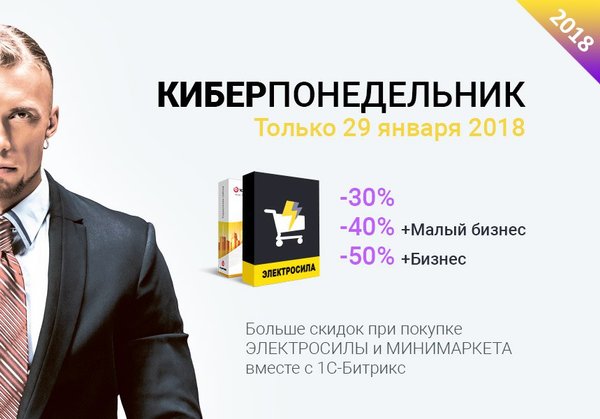 КиберПонедельник 2018 — Отличные скидки на готовые решения вместе с редакциями 1С-Битрикс.