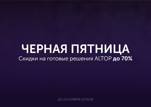 Черная пятница 2018! Скидки на готовые решения ALTOP до 70%, включая переходы и продления. Только до 23 ноября 23:59. Таких скидок больше не будет!