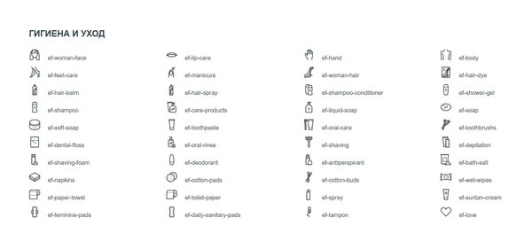 Иконочный шрифт ELASTO FONT — Иконки для сайта (26.09.2018): Добавлено 40 новых иконок по теме «Гигиена и уход»