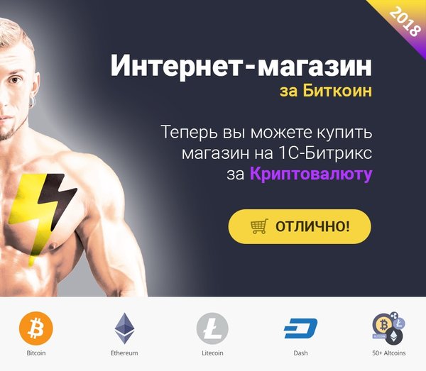 Теперь вы можете купить интернет-магазин на 1С-Битрикс за Биткоин! С помощью специального сервиса вы сможете оплатить наши услуги и продукты, используя популярные «Криптовалюты», такие как Bitcoin (Биткоин), Ethereum (Эфириум), Litecoin (Лайткоин) и более 30-ти других. Подробности у менеджера.