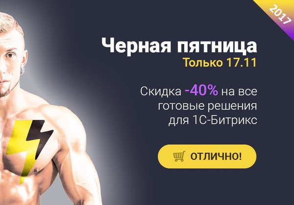 Черная пятница. Только 17 ноября 2017 года скидка 40% на все готовые решения для 1С-Битрикс от команды АЛЬТОП. Готовые интернет-магазин ЭЛЕКТРОСИЛА Готовый интернет-магазин ELASTO MINIMARKET Готовый сайт-визитка ELASTO START