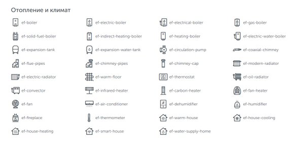 Иконочный шрифт ELASTO FONT — Иконки для сайта (18.01.2019): Добавлено 35 новых иконок по теме «Отопление и климат»