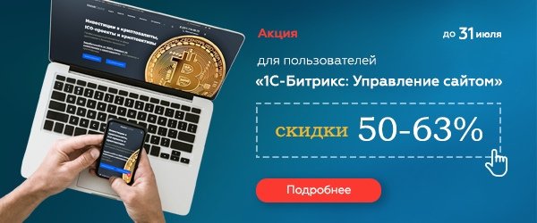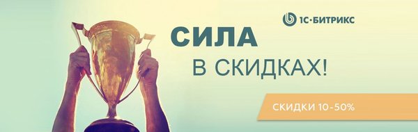 Чемпионат скидок от 1С-Битрикс стартовал! -15% на 1С-Битрикс Управление сайтом, -20% на переходы между редакциями, -63% на стандартное продление, -30% на готовые сайты и интернет-магазины.