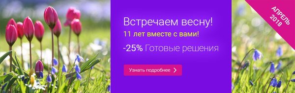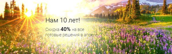 В связи с нашим юбилеем на все наши продукты до конца апреля 2017 года будет действовать скидка 40%. Также скидка будет доступна на Маркетплейс с 10 по 30 апреля 2017 года.