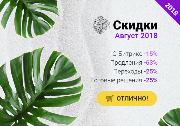 Летние скидки на 1С-Битрикс С 1 по 31 августа 2018