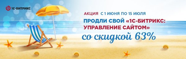 Масштабная акция по продукту «1С-Битрикс: Управление сайтом». Акция продлится с 1 июня по 15 июля. — Стандартное продление по льготной цене – со скидкой 63%. — Скидка 50% при переходе на более функциональные решения