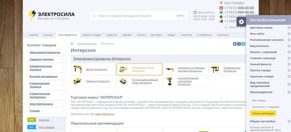 ЭЛЕКТРОСИЛА 3.2.3 (09.10.2017) — Добавлен вывод «ответ магазина» в компоненте «отзывы к товару»; — Добавлена возможность отключать вывод минимальной цены в каталоге товаров; — Улучшена работа решения на версии PHP 7.1; — Добавлена возможность загружать детальные страницы «Акции и скидки» и «Производители» со свернутыми блоками категорий товаров; — Добавлена возможность отключать блок «Похожие товары»; — Корректировка и оптимизация решения для более стабильной и быстрой работы. Подробнее