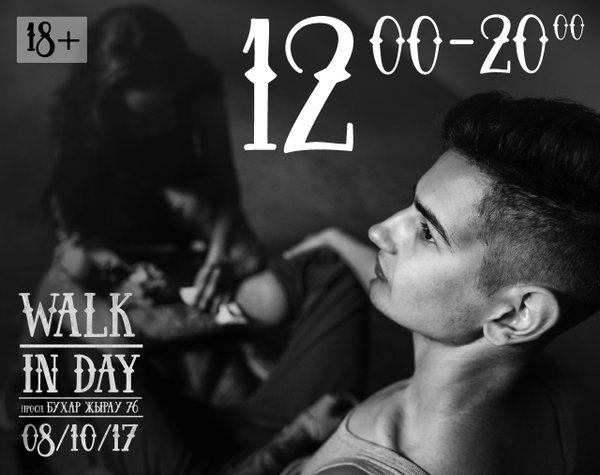 Walk In Day (22.09.2017): Дорогие друзья! Во избежании недопониманий и неприятных ситуаций, хотим напомнить что вход на мероприятие Walk in Day ТОЛЬКО с 18 лет! И поэтому настоятельно просим Вас, взять с собой удостоверение личности P.S.В противном случае Вас не допустят на территорию мероприятия