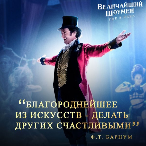 Ваш успех зависит только от вас! Заряжайтесь вдохновением от «Величайшего шоумена» с блистательным Хью Джекманом в главной роли!!! Всю информацию о сеансах вы можете узнать: