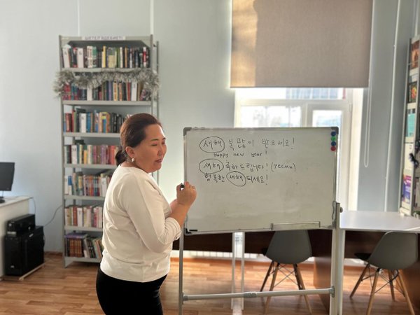 Кітапханада корей тілін үйренушілер үшін жаңа сабақ өткізілді. Қатысушылар түрлі халықтардың атаулары мен олардың тілдері туралы жаңа сөздерді үйреніп, сөздік қорын байытты.