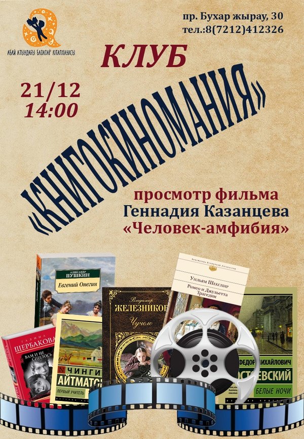 Достар! Сіздерді Г.Казанцевтің әйгілі «Адам-амфибия» фильмін бірге тамашалауға шақырамыз. Көрсетілімнен кейін фильмнің ғажайып әлемі мен кейіпкерлері туралы ой бөлісуге шақырамыз. Қатысушылар өз сезімдері мен пікірлерін ортаға салуға мүмкіндік алады. Кеңестік классиканың ерекше атмосферасына еніп, «Адам-амфибия» әлеміне саяхат жасау мүмкіндігін жібермеңіз! Дорогие друзья! Приглашаем вас на просмотр культового фильма режиссера Г.Казанцева «Человек-амфибия». После просмотра запланировано обсуждение, где каждый сможет поделиться своими впечатления… — Читать дальше