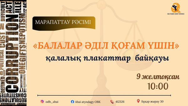 коррупцией. 9 декабря в 10.00ч. в Карагандинской областной детской библиотеке имени Абая жюри подведет итоги и объявит победителей конкурса на церемонии награждения. Не упустите шанс поддержать участников и вместе отпраздновать их достижения!