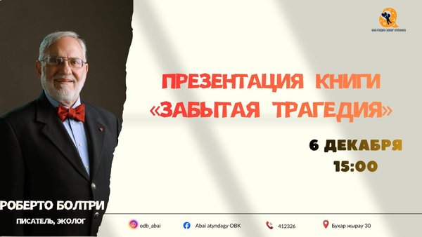 ығы мен төзімділігін, сол тарихи кезеңнің ауыр шындығын баяндайды. Қуғын-сүргін жылдары құрылған көптеген лагерьлер белгілі болғанымен, олардың ішінде ауқымы мен тарихи маңызы жағынан ерекше орын алатыны — Карлаг. Автор бұл еңбегінде тарихи материалдарды мұқият зерделеген маман ретінде көрінеді. 2026 жылы Карлагтың құрылғанына 95 жыл толады. Аталған кітап оқырманға тарихи шындықты сақтаудың және адам қадірін құрметтеудің маңызын тағы бір еске салады. Іс-шараның ұйымдастырушысы: Абай атындағы Қарағанды облыстық балалар кітапханасы Тел.: Ұялы.: +7 701 6674998 6 декабря в 15.00ч в Карагандинской областной детской библиотеке имени Абая (пр. Бухар жырау, 30) состоится презентация книги «Забытая трагедия» в переводе на русский язык итальянского писателя, эколога Роберто Болтри. Г-н Роберто Болтри является профессором Болонского университета в Италии. С 1996 года является волонтером ООН по Центральной Азии, в том числе по Казахстану. «Забытая трагедия» — это повествование о судьбах итальянских семей, оказавшихся в Карлаге, истории, полные драматизма и стойкости, вызывающие сопереживание. История помнит множество лагерей, созданные в годы репрессий, в которых ломались миллионы человеческих судеб, но Карлаг выделяется среди них своим огромным масштабом и значимостью. Роберто Болтри в своей книге выступает как исследователь исторических материалов. В 2026 году исполняется 95 лет со дня создания Карлага. Эта книга поможет читателям напомнить о важности сохранения исторической правды и уважения к человеческому достоинству. Организатор мероприятия: Карагандинская областная детская библиотека имени Абая Тел.: Моб.: