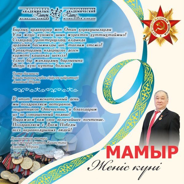 С ДНЕМ ВЕЛИКОЙ ПОБЕДЫ! Священный праздник, праздник со слезами на глазах – День Победы в Казахстане всегда отмечается с особым трепетом. Руководитель Карагандинского академического театра музыкальной комедии, заслуженный деятель Казахстана Амантай Ибраев от лица всего коллектива и от себя лично обратился с поздравлениями к народу Казахстана: -В этот знаменательный день мы поздравляем ветеранов, защитников Отечества, тружеников тыла и благодарим их за совершенный подвиг! Выражаем вам свое величайшее почтение! Поздравляем с Днём Победы всех нер… — Читать дальше