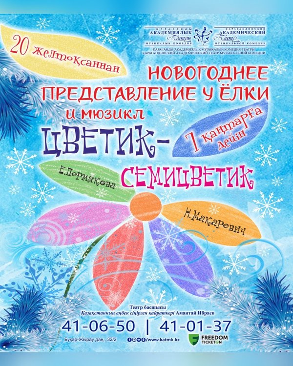 41-06-50), заказывайте у администраторов по тел. 41-01-37 или онлайн на сайте «Тикетон» КАРАГАНДА: ТЕМИРТАУ: