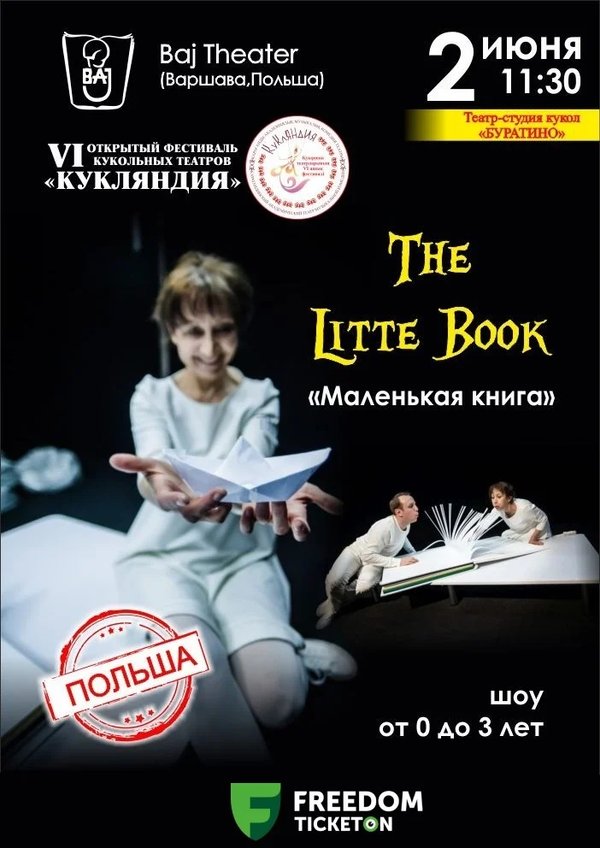 «КУКЛЯНДИЯ-2024» – ОБНОВЛЕНИЕ В ПРОГРАММЕ‼ 2 июня в 11.30 в театре-студии кукол «Буратино» в рамках VI Открытого фестиваля «Кукляндия» выступит театр из Польши BAJ THEATER. Спектакль для детей от 0 до 3 лет называется «Маленькая книга». Baj Theater — самый старый кукольный театр для детей в Польше, он открылся в 1928 году. В своем репертуаре он старается объединить классику и современность, при этом сохраняя между ними равновесие, и приглашает для работы самых интересных польских и зарубежных авторов. В репертуаре театра есть постановки как для… — Читать дальше