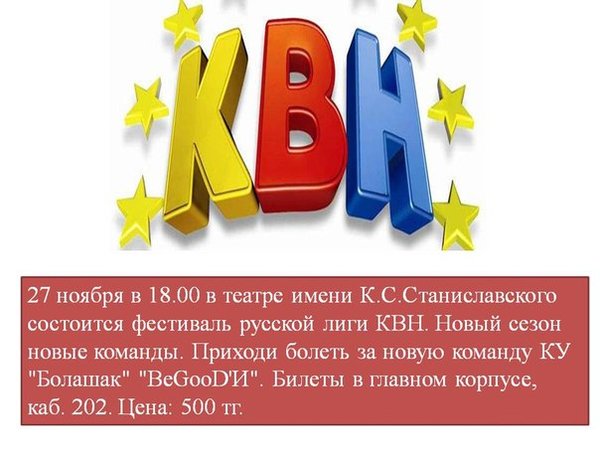 13 ноября в 14:00 в библиотеке им. Гоголя состоится межвузовская игра посвященная ко дню студенчество «Vivat studenchestvo». Приглашаем по болеть за студентов Болашак и КЕУ!!