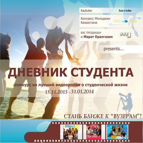 Конкурс «Дневник студента» проводится на лучший юмористический видеоролик о студенческой жизни среди университетов Республики Казахстан с 15 ноября 2013 года по 31 января 2014 года!!! Прием заявок до 10 ноября, спешите ребята))) Ссылка ниже…