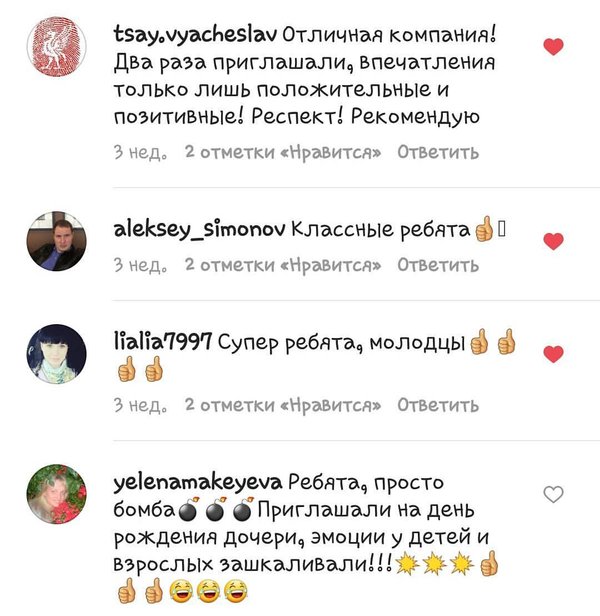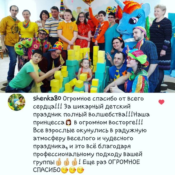 Оксана Шестакова (19.04.2017): Всегда приятно слышать и читать слова о том, наши клиенты получили превосходный и незабываемый праздник. Мы рады, что наши герои были на высоте и наш визит доставил вам удовольствие. Спасибо, что нашли время дать нам знать о ваших эмоциях -----------------------------
