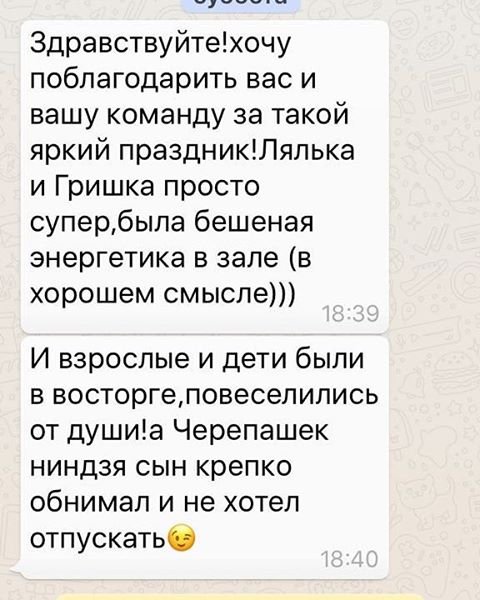 Всегда приятно узнавать, что наши праздники приносят столько положительных эмоций нашим клиентам Мы рады, что Вам нравится и наш визит доставил вам удовольствие. Спасибо, что находите время делится с нами радостью! -----------------------------