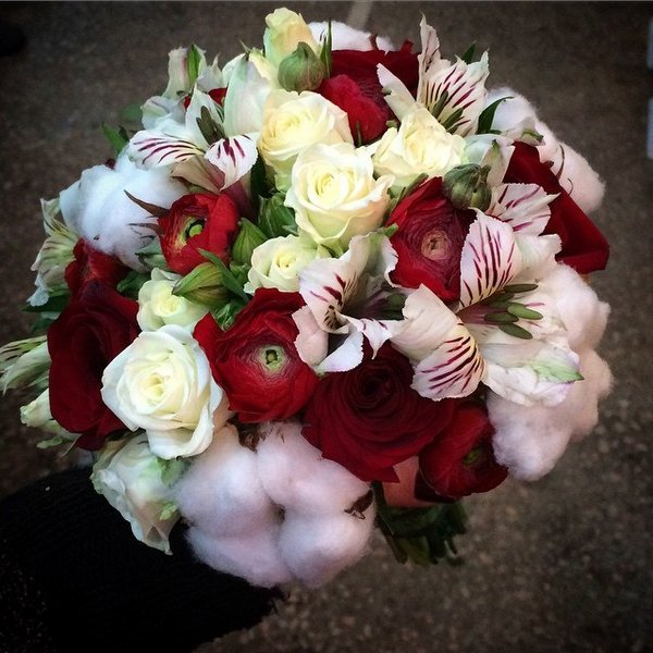 Свадебный букет с ранункулюсами, спрей розой, альстремерией и (!)хлопком
