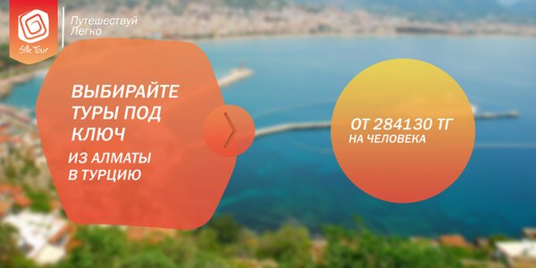 Получили отпускные? Не теряйте времени! Выбирайте туры под ключ из Алматы в Турцию: вылет 4 июня от 286810 тенге на 8 ночей, вылет 6 июня на 9 ночей от 286810 тенге на человека, вылет 9 июня на 8 ночей от 284130 тенге на человека. _____________________________ Silktour | zapros@silktour.kz Алматы +, +