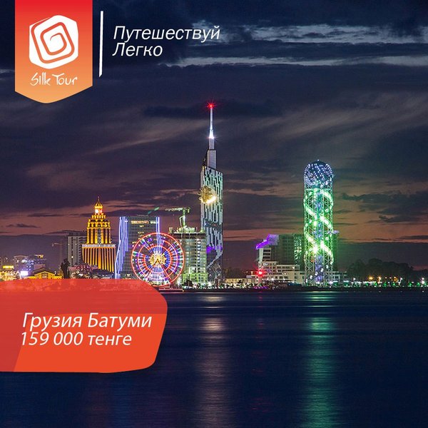 Хочешь окунуться в атмосферу солнечного тепла и душевного гостеприимства? Тогда тебе к нам! Только у нас туры в Батуми по специальной цене от 159 000 тенге. HOLIDAY HOUSE 3, AMIGO HOTEL 3, IRISE KOBULETI Цены на человека и включают: — Авиабилет Алматы-Батуми-Алматы, — Трансфер аэропорт-отель-аэропорт, — Проживание 7 ночей, 1/2 DBL, — Питание- завтраки. ______________________________ Silktour | zapros@silktour.kz Алматы +, +