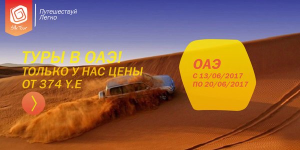 Туры В ОАЭ! Только у нас цены от 374 y.e ОАЭ с 13/06 по 20/06/2017 Golden Tulip Al Barsha. 4* 213у.е Al Barsha Hotel Apartments. 5* 273 у.е ____________________________ Silktour | zapros@silktour.kz Алматы +, +