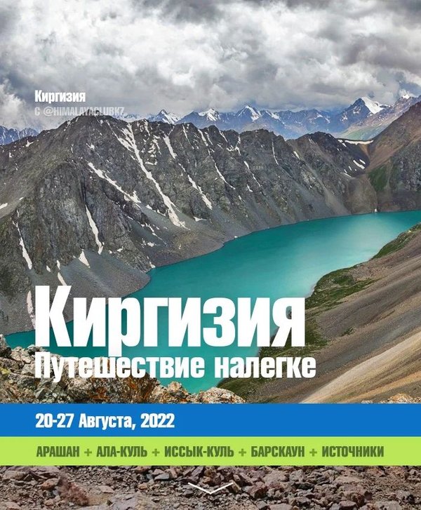 каралинск. Поход с палатками 17—18 Сентября Свободно 15 мест / 18 000 тг Алматинская классика (Кольсай, Чарын, Каинды,…) 23—25 Сентября Свободно 15 места / 42 000 тг + ЖД Мангистау. Бозжира, Тузбаир, шары,… 24—27 Сентября Свободно 3 места / 165 000 тг + Авиа Приэльбрусье. Йога трекинг тур Сентябрь Свободно 15 мест / $790 + авиа Ликийская тропа. Запад с палатками 25 Сентября — 4 Октября, 2022 Мест нет / $450 + Авиа — — — — — - Подробные анонсы ищем тут 1) 2) 3) сайте