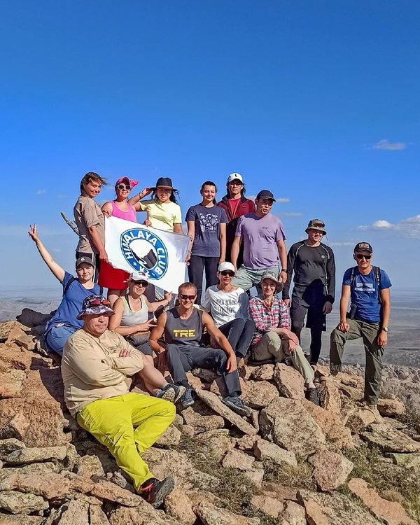 Аксоран взят Команда Гималайского клуба полным составам поднялась на самую высокую точку Карагандинской области вершину Аксоран! (1565 м.н.у.м.) Оставили записи в новой тетради на вершине… А вот старую кто-то по варварски разорвал и оставил в железном боксе рядом ️ Прогулялись по урочищам Торкора, Мырзакожа. Посетили водопад, искупались в чаше и насладились красивейшей природой Горы Кызыларай и Аксоран — мы вернёмся к вам в Августе