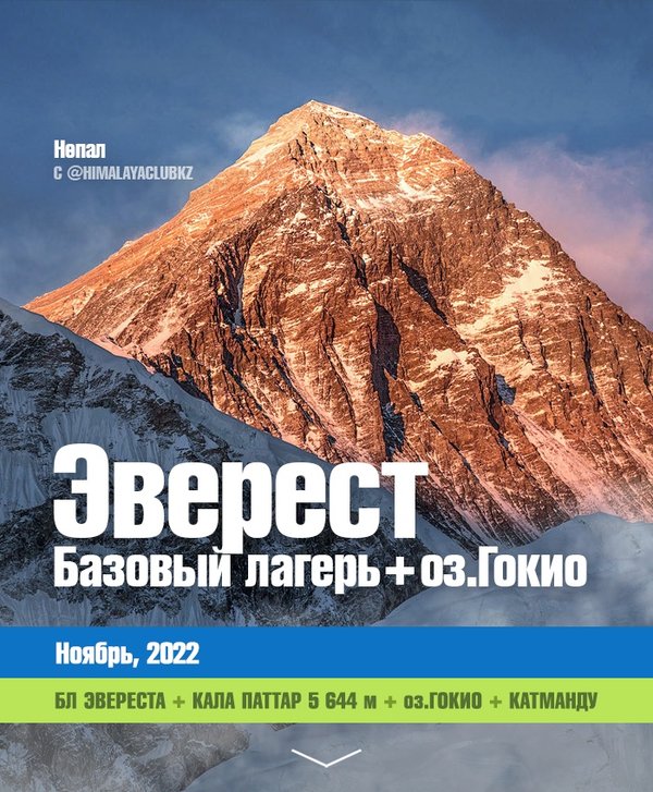 ше — смотрим в нашем в Фотоальбомах Маршрут: Астана (Алматы) — Катманду — Лукла — Намче базар — Тенгбоче — Базовый лагерь — вершина Кала Паттар — перевал Чо Ла — озёра Гокио — Намче Базар — Лукла — Катманду — Астана (Алматы) БЮДЖЕТ: $1200 В бюджете учтено: Услуги инструктора клуба Перелёт Катманду-Лукла-Катманду Трансферы в/из аэропорты Непала Базовое питание на треке Проживание в гостевых домах на треке Снаряжение Групповая аптечка Все необходимые разрешения и пермиты Оформление разрешений ДО вашего прилёта. Вам не придётся тратить на это своё время. Виза в Непал Все необходимые консультации на этапе подготовки и во время похода В бюджете НЕ учтено: × Авиабилеты Дом-Катманду-Дом и затраты на транзитах (~$800) × Все COVIDные расходы × Питание и проживание в Катманду ‼ВАЖНО: — В зависимости от погоды либо состояния группы руководитель может внести изменения в маршрут — Минимальное количество участников — 6 человек. При меньшем количестве — бюджет будет увеличен — При невозможности отправиться в трип – возвраты осуществляются за вычетом уже сделанных броней на участника Телефоны: whatsapp) Мы в интернетах: [www] — himalayaclub.kz [insta1] — [insta2] — [telegram] — [vk] -