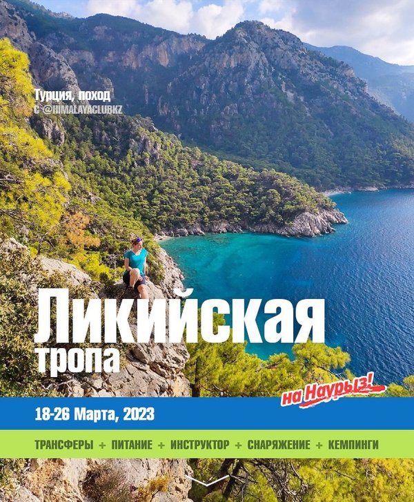 Поход по Западной Ликийской тропе с @himalayaclubkz Ну, наконец мы разведали и это популярное направление! Живописнейший трек — горы, море, лес, пески. Крутые наборы и лазурные пляжи. Песни у костра и комфортные кемпинги. Всё это невероятным образом замешано в одном турецком походе — Западная Ликийка Дружная компания Гималайского клуба + всё вышеперечисленное = Вернёмся сюда весной 2023!;)