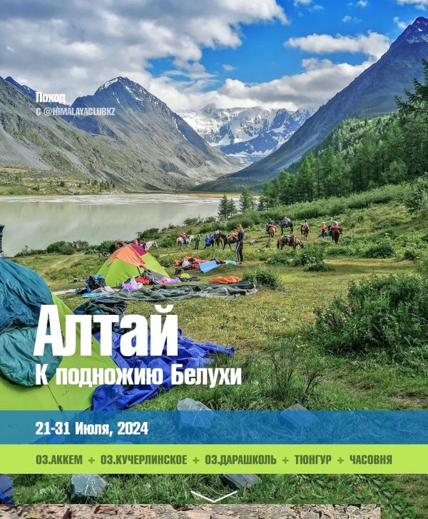 инское 24 июля. Маршрут в глубь ущелья, вдоль Кучерлинского озера 25 июля. Броды через коней Айры. Озеро Дарашколь 26 июля. Возвращение к озеру Кучерлинское 27 июля. Выход к перевалу Каратюрек на Кедровые стоянки 28 июля. Перервал Каратюрек. Ночёвка на метеостанции, озера Аккем 29 июля. Часовня перед Аккемским ледником. Вид Белухи. Спуск по Аккемскому ущелью 30 июля. Переход к Трём берёзам 31 июля. Запасной день 1 Августа. Ночёвка в Тюнгуре. Ночной выезд домой БЮДЖЕТ: 220 000 тенге + дорога Дом-Алматы-Дом В бюджете учтено: Трансфер Барнаул-Тюнгур-Барнаул Проживание в Тюнгуре 2 дня Все заброски на ГАЗ66 Конные заброски провианта Питание на маршруте (полевая кухня) Снаряжение Места под палатки Оформление пропусков в погранзону В бюджете не учтено: × Дорога Дом-Барнаул-Дом × Питание по пути до Тюнгура × Питание в Тюнгуре Телефоны:, whatsapp)