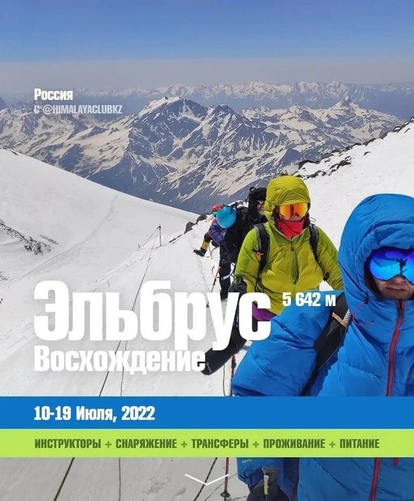 ЭЛЬБРУС (5 642 м) с @himalayaclubkz Есть вершина! В Июле 2022 Гималайский клуб совершил своё второе восхождение на вершину Европы — гору Эльбрус. Высота 5 642 м. УСПЕШНО! Поздравляем команду С ГОРОЙ!