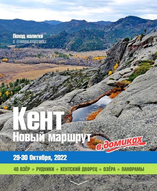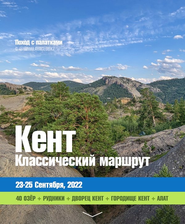 алатках, питаться походной пищей, а протяжённость маршрута в среднем составляет ~49 км (по 15, 16 км в день) Предварительная программа: 40 озёр, заброшенные рудники, долина Кызыл-Кеныш, буддийский храм, городище Кент эпохи бронзы, лагерь Археологов, треккинг по лесу В бюджете учтено: Трансфер Караганда-Кент-Караганда + прицеп для комфортной транспортировки снаряжения Базовое питание (завтрак, обеденный перекус, ужин) Снаряжение (спальник, рюкзак, каремат, место в палатке) Инструктор клуба Плата за посещение нац-парка * Выезд из Караганды 23 сентября в 8:00, возвращение 25 сентября ~21:00 * Проживание в палатках * Благоустройство лагеря (установка палаток, приготовление пищи) осуществляется всеми участниками похода * В зависимости от погоды либо состояния группы руководитель может внести изменения в маршрут Телефон/WhatsApp: Мы в интернетах: [www] — himalayaclub.kz [insta] — [telegram] — [vk] -