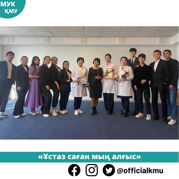 вич Омаркулов в своем выступлении поздравил педагогов с профессиональным праздником и отметил значимость профессии педагога и наставника в обществе. «У каждого человека в жизни есть учитель и наставник, благодаря которым у всех начинаются первые шаги в жизни. Мы благодарим всех наших замечательных педагогов и наставников за ваш благородный труд. На вас лежит большой круг ответственности за совершенствование молодого поколения, формирование будущего страны», — подчеркнула Карлыгаш Амангельдиевна. Студенты подготовили танцы, песни, конкурс. Восторг у присутствующих вызвал красивый танец «Жауынгер» в исполнении Қайырбек Ақдидар. Следующим номером праздничного мероприятия было исполнение на домбре кюя «Адай» обучающимся Альмагамбетовым Темирланом. На сцене с песней «Ұстазым» выступили студенты группы 101 КОМ Жанасов Рамазан и Турдыбеков Сабыржан. Танцевальный конкурс организован руководителем танцевального кружка Байдалиевой Акботой в составе студентов Кабибуллаевой Аяжан, Жанжігітовой Жанерке, Гайд Асылана. Замечательным сюрпризом для преподавателей Школы сестринского образования стало награждение со стороны студентов: номинацией «Самый харизматичный преподаватель» — преподавателя НВП Латыпова Назипа Сатитовича, номинацией «Королева-мать» — Естемесову Карлыгаш Амангельдиевну, номинацией «Лобачевский отдыхает» — преподавателя математики Жумакаеву Сауле Кульбановну, номинацией «Самый скромный преподаватель» — преподавателя информатики Қалдар Сауле Акжоловну, номинацией «Супер Золушка – ұстаз» — преподавателя казахского языка Турысбекову Арайлым Есенгельдиевну, номинацией «Көңілді мұғалімге» — преподавателя биологии Абдиеву Актолкын Агабековну. Благодарим за активное участие в подготовке праздничной встречи председателя КССУ Школы сестринского образования и актива студенческой республики «Самрук» Байдалиеву Акботу, ведущих мероприятия, обучающихся 201 КЛД — Жанжігітову Жанерке, Кабибуллаеву Аяжан, Гайд Асылана, обучающихся 1 курса — Қайырбек Ақдидара, Жанасова Рамазана, Турдыбекова Сабыржана. Онгарбаева А. И., Школа сестринского образования