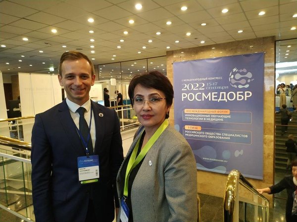 беру мен зерттеулерде жасанды интеллекті қолданудың өзекті мәселелері қамтылды. Үздіксіз медициналық білім беруде симуляциялық технологияларды бастапқы мамандандырылған аккредиттеуде қолдану бойынша дәстүрлі тақырыптар талқыланды. Конференция барысында пленарлық отырыстардан басқа дөңгелек үстелдер, практикалық шеберлік сыныптары мен семинарлар өтті. Дәстүрлі түрде өтетін көрмеге Ресейдің жетекші симуляциялық жабдықтарды, медициналық оқытуға арналған бағдарламаларды өндіретін өндірушілер мен жеткізушілер қатысты. Іс-шара гибридті форматта өтті (дәстүрлі қатысу түрінде және онлайн). Қазақстаннан спикер ретінде «Қарағанды медицина университеті» КеАҚ симуляциялық және білім беру технологиялар орталығының басшысы Кемелова Гульшат Сейтмуратовна қатысып, кәсіби құзыреттілікті дамыту тәсілі ретінде «Коммуникативтік құзыреттілікті дамыту кезеңдері: Қарағанды медицина университетінің тәжірибесі» және «Кідіріссіз жағдайлар аймағы» атты онлайн түрінде екі баяндама ұсынды. Кемелова Гульшат Сейтмуратовнаның баяндамасы Ресейдің медициналық қоғамдастығы тарапынан үлкен қызығушылық тудырды. Симуляциялық және білім беру технологиялары орталығының ПОҚ конференцияғы онлайн форматта белсенді қатысты. Конференцияның барлық тақырыптары өзекті және қызықты болды. СББТО маманы Ж. Б. Бостанова _________________________________________________ РОСОМЕД-2022: Симуляционное обучение в медицине 28—30 сентября 2022 года в Москве состоялся XI съезд Российского общества симуляционного обучения в медицине и Международная конференция «Симуляционное обучение в медицине: опыт, развитие, инновации. РОСОМЕД-2022. Организаторами мероприятия выступили РОСОМЕД, Московский государственный университет имени М.В. Ломоносова, Общество врачей России, Системный интегратор обучения в медицине (СИНТОМЕД). Четырехдневная программа охватила актуальные вопросы инновационных обучающих методик в медицине, симуляции виртуальной реальности, применение искусственного интеллекта в образовании и исследованиях. Обсуждались традиционные темы по применению симуляционных технологий в первичной и первичной специализированной аккредитации, непрерывном медицинском образовании. В ходе конференции помимо пленарных заседаний прошли круглые столы, практические мастер-классы и семинары. Ведущие российские производители и поставщики симуляционного оборудования, программных решений для медицинского обучения приняли участие в традиционной выставке. Мероприятие проходило в гибридном формате (очно и онлайн). Спикером из Казахстана выступила руководитель Центра симуляционных и образовательных технологий НАО «Медицинский университет Караганды» Кемелова Гульшат Сейтмуратовна, которая в онлайн выступлении представила два доклада «Этапы развития коммуникативной компетентности: опыт Медицинского университета Караганды» и «Территория неотложных состояний» как способ развития профессиональных компетенций. Выступление Кемеловой Г.С. вызвало большой интерес у медицинского сообщества России. ППС Центра симуляционных и образовательных технологий приняли активное участие в онлайн формате. Все темы конференции были актуальными и интересными. Бостанова Ж.Б. специалист ЦСОТ
