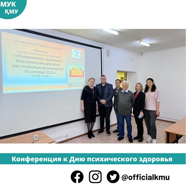 жірибелі психиатр-дәрігер, психотерапевт, кафедра ассистенті Юрий Иванович Базяк ашты, ол өз сөзінде психиатрия ілімінің ғылым және тәжірибе жүзіндегі жаһандық өзгерістер контекстінде психиатр-дәрігердің кәсіби қалыптасу кезеңдерін атап өтті. Бұдан әрі, қысқа, бірақ ақпараттық хабарламаларда 1 және 2 курс резидент-психиатрлары, клиникалық психологтар, Қарағанды университетінің 4 курс студенттері. Е. А. Букетова психиатрияның өзекті мәселелерінің кең спектрін – Қазіргі әлемдегі психикалық денсаулықты, психиатрияға қарсы қозғалысты, психиатриялық пациенттерді стигматизациялауды, психиатрия мен наркологияда тиімді сәйкестікті қалыптастыруды қамтыды. Шекаралық психикалық бұзылуларға, психологиялық кеңес беруге, психоәлеуметтік көмекке шолу жасалды. психиатриялық көмек көрсету стандартының талаптары, ҚР клиникалық хаттамалары, оның ішінде жалпы практика дәрігерлерге арналғвн хаттамалар талқыланды. Психотерапевт мамандығы мен осы саладағы проблемалық мәселелерді мұқият талдауды кафедра ассистенті Заровный Кирилл Владимирович жасады. Конференция соңында Юрий Иванович Базяк пен жас психиатр-дәрігерлер, клиникалық психологтар конференция барысында алынған ақпараттың өзектілігін, маңыздылығын және қажеттілігін атап өтті, әріптестер дайындалған презентацияларды бір-бірімен бөліседі. Неврология, психиатрия және реабилитология кафедрасының асс.кафедра профессоры Мациевская Л. Л. _____________________________________________________ Конференция к Дню психического здоровья 10 октября 10 октября 2022 года в главном корпусе НАО «Медицинский университет Караганды» состоялась межкафедральная конференция, посвящённая Всемирному дню психического здоровья, который в этом году отмечается под девизом «Сделать психическое здоровье и благополучие для всех глобальным приоритетом». Представители курса психиатрии пригласили обучающихся старших курсов по специальности «Семейная медицина» для разговора о работе психиатрической службы, интегрирующейся в настоящее время в систему ПМСП. Конференцию открыл старейший преподаватель, опытный врач-психиатр, психотерапевт, ассистент кафедры Юрий Иванович Базяк, осветивший в своем выступлении этапы профессионального становления врача-психиатра в контексте глобальных изменений в психиатрической науке и практике. Далее в коротких, но информативных сообщениях резидентами-психиатрами 1 и 2 курсов, клиническими психологами, студентами 4 курса Карагандинского университета им. Е.А. Букетова освещен широкий спектр злободневных вопросов психиатрии – психическое здоровье в современном мире, антипсихиатрическое движение, стигматизация психиатрических пациентов, формирование эффективного комплаенса в психиатрии и наркологии. Сделан обзор пограничных психических расстройств, психологического консультирования, психосоциальной помощи, требований стандарта оказания психиатрической помощи, клинических протоколов РК, в том числе для пользователей — врачей общей практики. Тщательный анализ субспециальности психотерапевта и проблемных вопросов в этой области сделан ассистентом кафедры Заровным Кириллом Владимировичем. В завершение конференции Юрий Иванович Базяк и молодые врачи-психиатры, клинические психологи подчеркнули актуальность, обширность и необходимость полученной во время конференц
