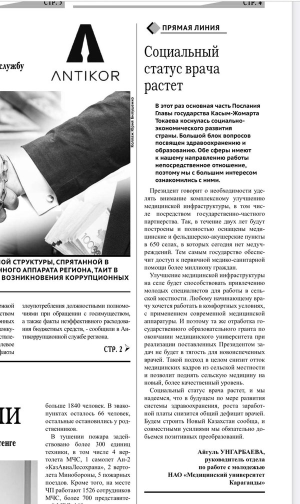 алына жаза аласыздар. ⏰ Сондай-ақ, жұмыс күндері сағ 9.00—17:00 аралығында ішкі нөмір 1228) нөміріне хабарласуларыңызға болады. __________________________________________ Друзья! С 1 ноября 2022 года в Медицинском университете Караганды начинает работу Общественная приемная. Задача Общественной приемной — наладить постоянно действующие каналы коммуникаций со студентами, коллективом, обществом в рамках реализации Послания Президента РК об укреплении общенационального согласия, партнерства власти и общества, следуя концепции «слышащего государства». По любым волнующим вопросам можно обращаться по телеграм-каналу — ⏰ Также можно звонить по номеру: внутренний 1228) с 9.00 до 17.00. Ждем вас!