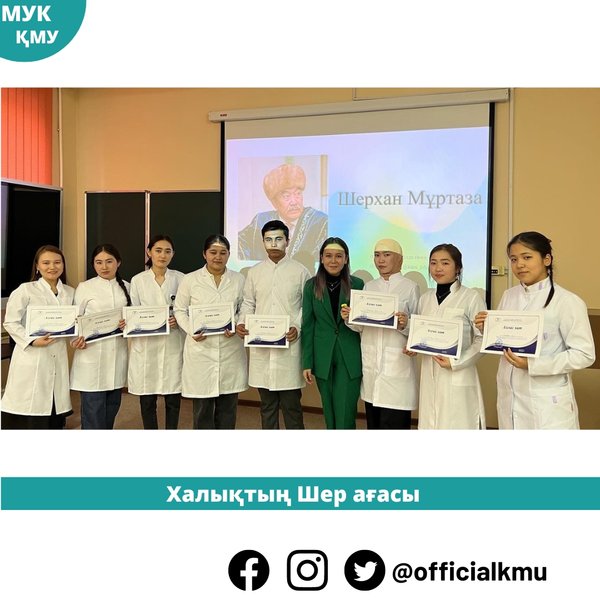 ылдығына орай KMU — Life Жас журналистер клубының ұйымдастыруымен 11 қазан күні интелектуалды іс-шара өтті. Іс- шарада Шерхан Мұртаза атамыздың өмірбаянымен, көркем әдеби дүниелерімен танысып, студенттер арасында интелектуалды ойын өткізілді. Қатысушылар жүлделі орындармен және алғыс хаттармен марапатталды.