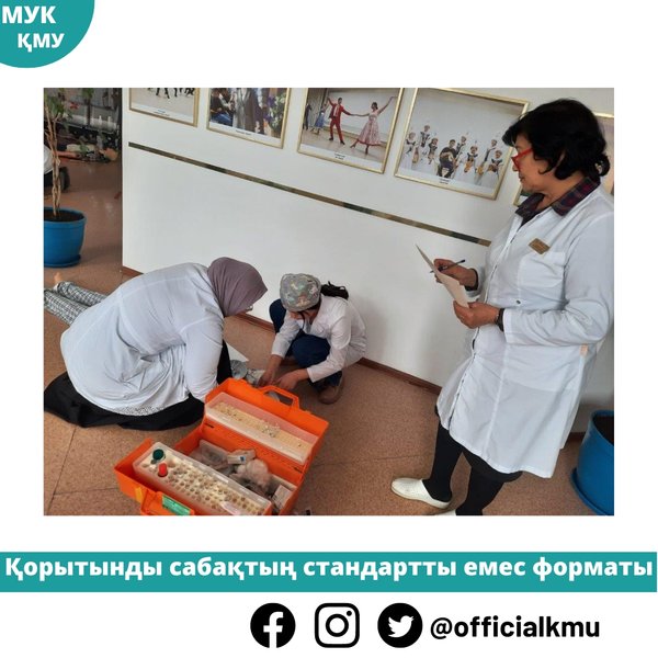 о хороший результат. Также проведен дебрифинг, в ходе которого обсуждены результаты и ошибки студентов. Студенты выразили благодарность за формат проведения занятия итогового занятия. ______________________________________ 26.10.2022 ж. Симуляциялық білім беру технология орталығында Шұғыл жағдайдағы симуляциялық курс бойынша 5-ші курс ЖМ мамандығы бойынша білім алып жатқан студенттер арасында «Төтенше жағдай территориясы» атты байқау өткізілді. Әртүрлі клиникалық жағдайға байланысты 5 ситуациялық есепті қолдана отырып жедел көмек көрсету хаттамасына сәйкес, алгоритм мен триаж жүйесі талабына сай білімдерін бағаладық. Байқауға ЖМ факультетінің төрт тобы: 5002, 5018, 5003, 5020 қатысты. Барлық топтар бірдей, жақсы нәтиже көрсетті. Конкурс аяқталғаннан кейін дебрифинг өткізіліп, студенттердің нәтижелері мен қателері жөнінде сұрақтар талқыланды. Шара соңында студенттер қорытынды сабақтың өткізілген форматы ұнағанын айтып, алғыстарын білдірді. Тренерлер: Шмаков А.С; Евлоева Р.М; Нурекешова Р.Ж; Нам Э.Н; Мухаметжанова Р.А; Сапарова А.С