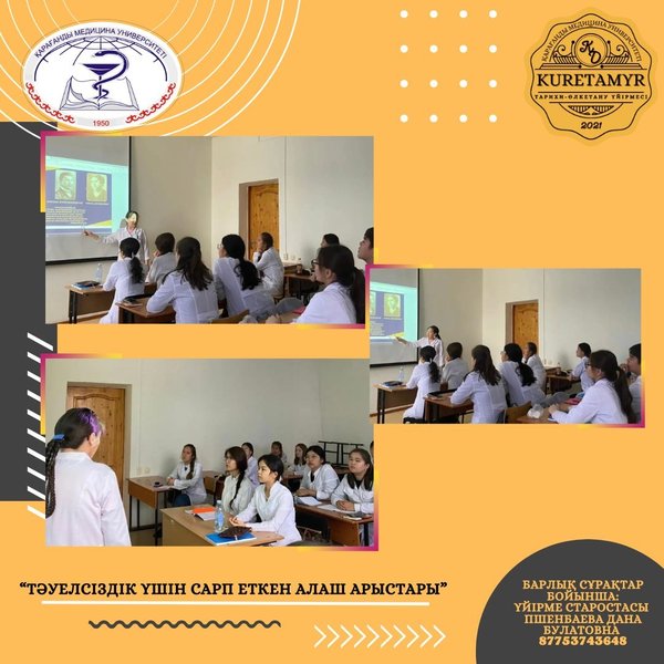 арын еске алу мақсатында Қарағанды Медицина Университетінің 1—2курс студенттеріне Қазақстан тарихы және ӘСП кафедрасының ассистент профессоры, «Күретамыр» тарихи-өлкетану жетекшісі Абдрахманова Камшат Жақсылыққызы кураторлық сағат өткізді.