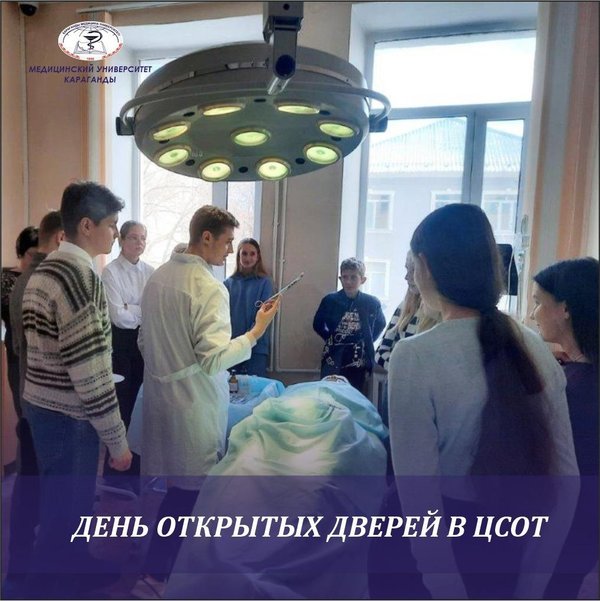 лады. Мектеп оқушыларына негізгі медициналық манипуляциялар көрсетілді, әрбір оқушы қарапайым дағдыларды орындау арқылы өзін медициналық қызметкер ретінде сезіне алды. Дәрігер мамандығын таңдауды жоспарлағандар ерекше қызығушылық танытты. Барлық оқушыларға экскурсия қатты ұнады және олар біздің орталыққа қайта келуге ниет білдірді. ______________________ День открытых дверей в ЦСОТ 29 октября 2022 года в Центре симмуляционных и образовательных технологий состоялся ежеквартальный день открытых дверей для учащихся 8,11-х классов школы-лицея № 1 г. Сарани. Тренерами практических навыков и тьютерами проведена экскурсия по Центру, где школьники узнали много нового и интересного о нашем университете. В ходе экскурсии ребята смогли увидеть отличное материально-техническое оснащение одного из лучших симуляционных центров Казахстана. Школьникам продемонстрированы базовые медицинские манипуляции, каждый ученик смог попробовать себя в роли медицинского работника, выполняя простые навыки. Особый интерес был у тех, кто планирует выбрать профессию врача. Все учащиеся получили большое удовольствие от экскурсии и изъявили желание посетить наш Центр еще раз.