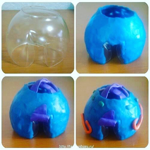 удущих ног. Далее нужно сделать тело овечки — нагретым шилом делаем дырки в закрытом яйце от Киндер сюрприза. Такую заготовку отдаем ребенку, он будет вставлять палочки в отверстия. Отрезаем один ватный кончик от палочки и изнутри просовываем их пластмассовым концом наружу (ватный кончик внутри нужно смазать клеем) — ножки овечки готовы. После чего вставляем в оставшиеся дырочки на теле половинки ватных палочек. Завершающим этапом поделки будет мордочка - нужно сделать на основе, состоящей из трех ватных палочек. Оберните ватный комок вокруг палочек и смочите клеем, придайте нужную форму. После того как все подсохнет, разукрасьте мордочку.