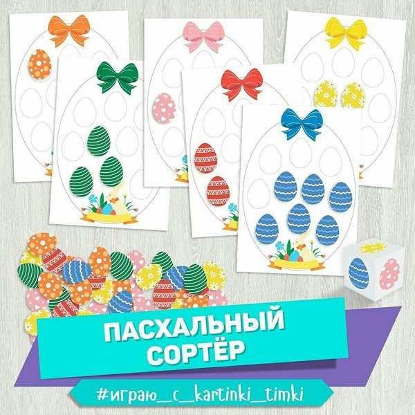 е. Далее по очереди бросаем кубик и убираем все цвета, не соответствующие цвету Вашего бантика. Кто первый избавится от лишних цветов, тот и выиграл. ⠀ Веселых вам игр! ️ ⠀ Скачать шаблоны для игры Вы можете по ссылке: Папку можно получить по ссылке: Пасхальная игра