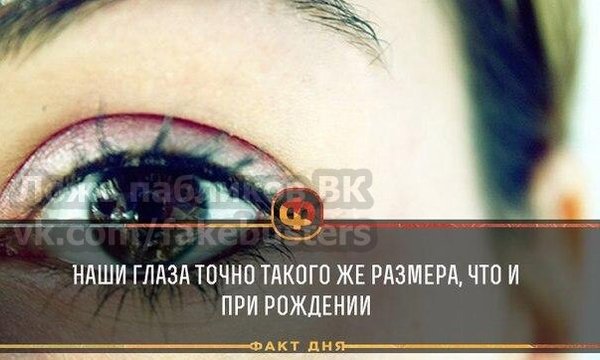 Ложь пабликов ВК | ЛПВК (02.07.2017): При рождении диаметр глазницы составляет примерно 17,5 миллиметра, в подростковом возрасте — 20—21 миллиметр, а у взрослых людей — 24 миллиметра. А хрусталик глаза продолжает расти в течение всей жизни человека.
