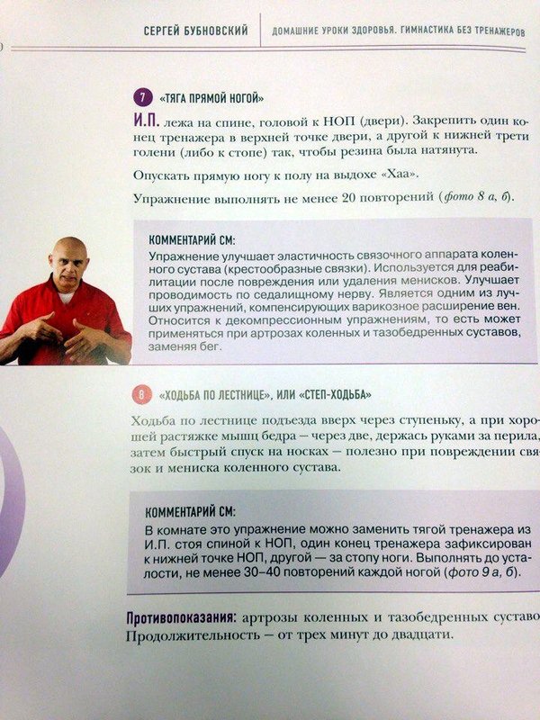 Книга «Домашние уроки здоровья» С.М. Бубновского Книгу и диск со всеми 60 упражнениями гимнастики без тренажеров вы можете приобрести уже сейчас в нашем центре! Сегодня рассмотрим рекомендации доктора и комментарии по двум упражнениям: «Тяга прямой ногой» и «Ходьба по лестнице»!