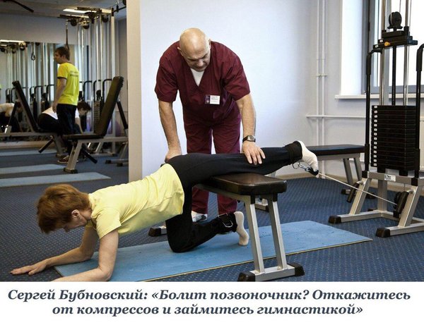Сергей Бубновский: Болит позвоночник? Откажитесь от компрессов и займитесь гимнастикой Доктор медицинских наук, профессор, телеведущий Сергей Бубновский после автокатастрофы 27 лет ходил на костылях. И совершил невероятное! Встал на ноги. Благодаря разработанной системе оздоровления. Не давал себе раскисать, хотел жить полноценной жизнью. Это при тяжелейшей патологии и нескольких сложнейших операциях! А сегодня Сергей Бубуновский на своих приемах буквально переворачивает сознание своих пацие… — Читать дальше
